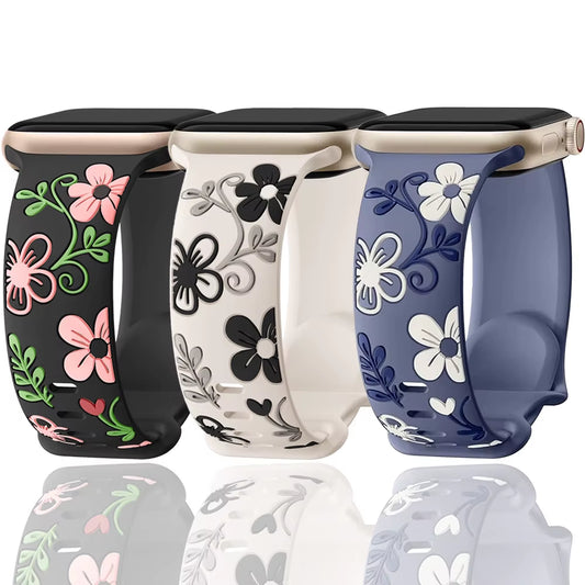 Cartoon Engraved Band Compatible with Apple Watch Bands 40Mm 44Mm 41Mm 38Mm 45Mm 42Mm 49Mm Women,Cute Pattern Strap Soft Silicone Wristbands for Iwatch Series 8 7 6 SE 5 4 3 2 1 Ultra 3 Pack
